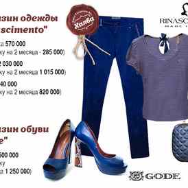 Одежда: Gin Tonic, Mustang, Lee Cooper, s.Oliver, Rinascimento, Levi’s, Joop, Balmain, Cacharel, Jean Paul Gaultier, Smalto, Ungaro homme, Andrew GN, Azzaro, Emanuel Ungaro, Irfe, Comme des Garcons, Antonio Berardi, Junior Gaultier, Miss Blumarine, Tartine et Chocolat, John Galliano, Regina, Rochas, Leonard и др.